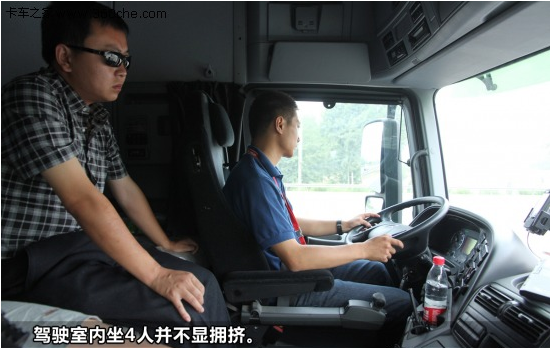 這Megaspace系列款駕駛室是奔馳Actros批量車型中最大的一款,內(nèi)部空間沒的說,在之前的文章中我們也介紹過了,平地板駕駛室能夠在里面直立行走。此次試駕過程中,為了更好的展示奔馳的各項功能,駕駛室內(nèi)需要坐上包括駕駛員、奔馳培訓(xùn)師、攝像和攝影四個人,沒有一點擁擠,而且相互之間的工作也不會干涉,保證了試駕過程的順利進行。