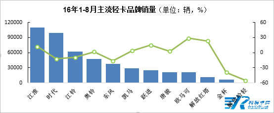 根據(jù)科瑞卓信調(diào)研顯示,2016年1-8月主流輕卡品牌共銷售46.9萬輛輕卡,同比下降3.1%,輕卡市場表現(xiàn)依舊低迷。