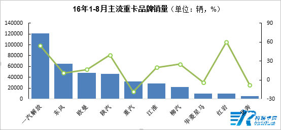 2016年1-8月主流重卡品牌銷量監(jiān)測